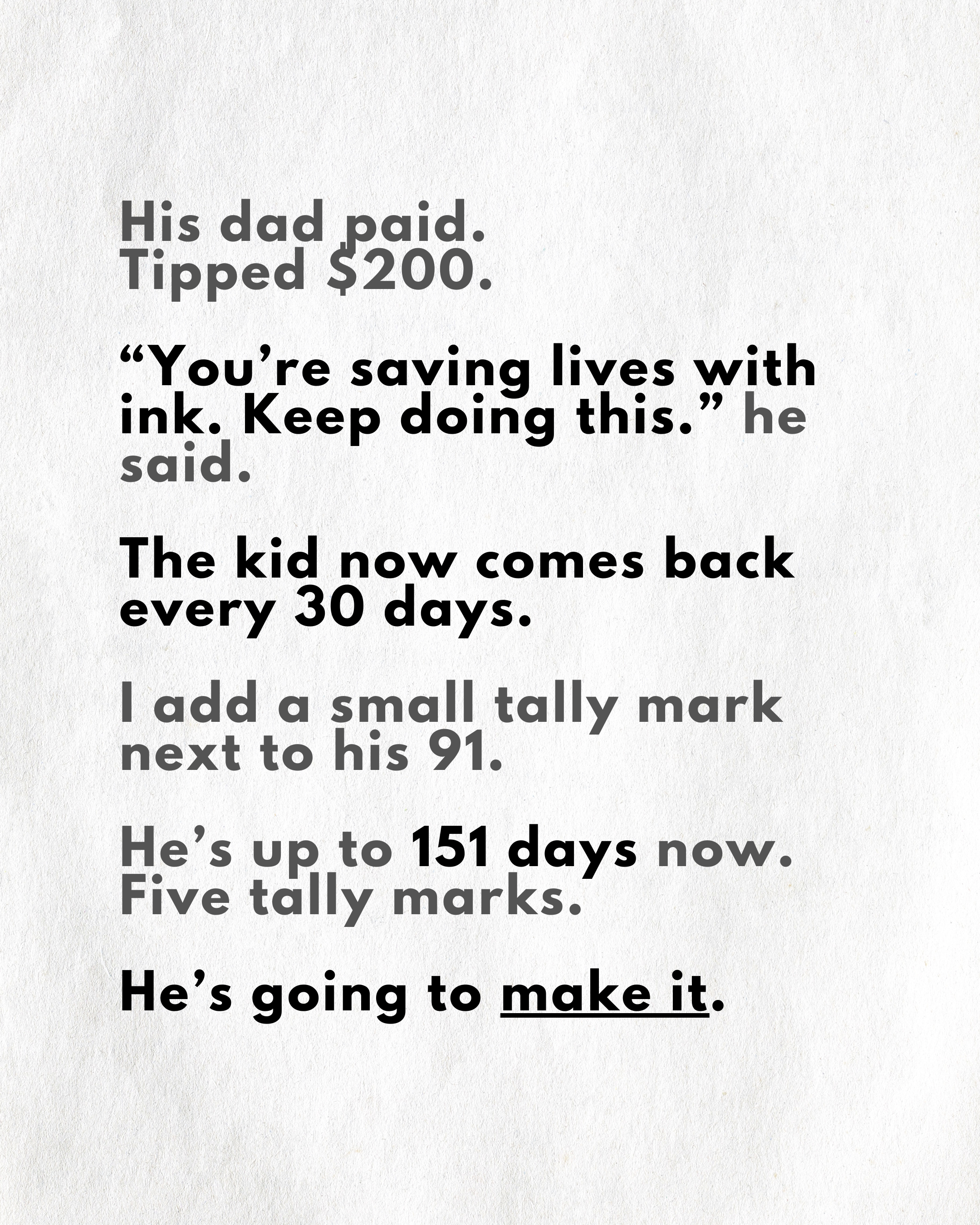 “One Tattoo at a Time” is built on that same philosophy.
