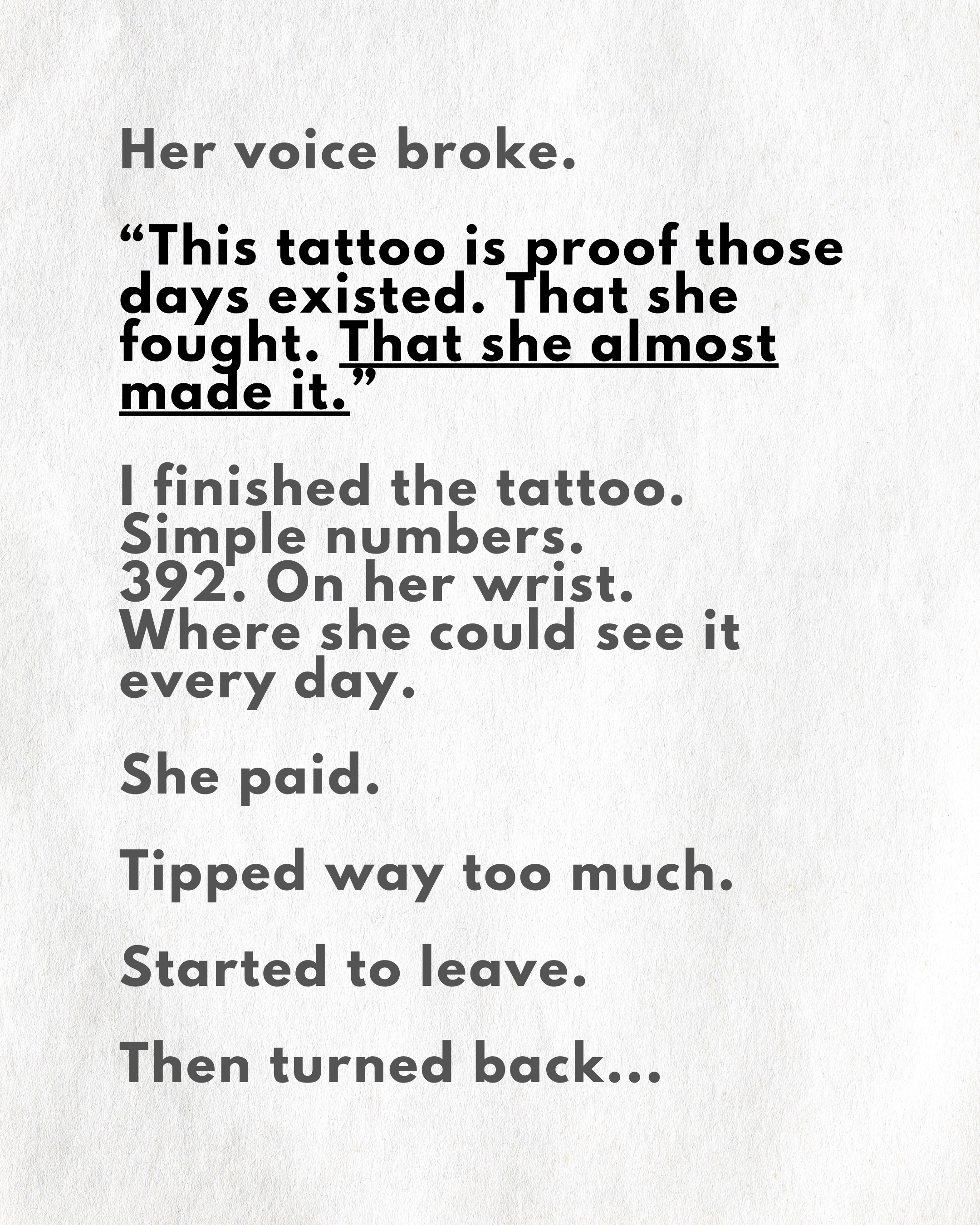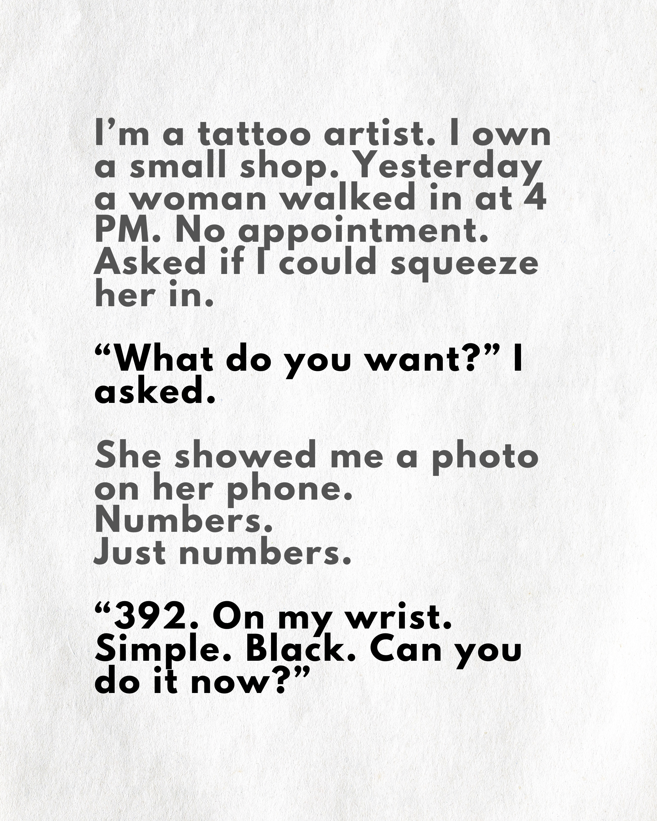 You show up to your session, meet your artist, and together we bring your story to life. One date, one number, one tattoo at a time.