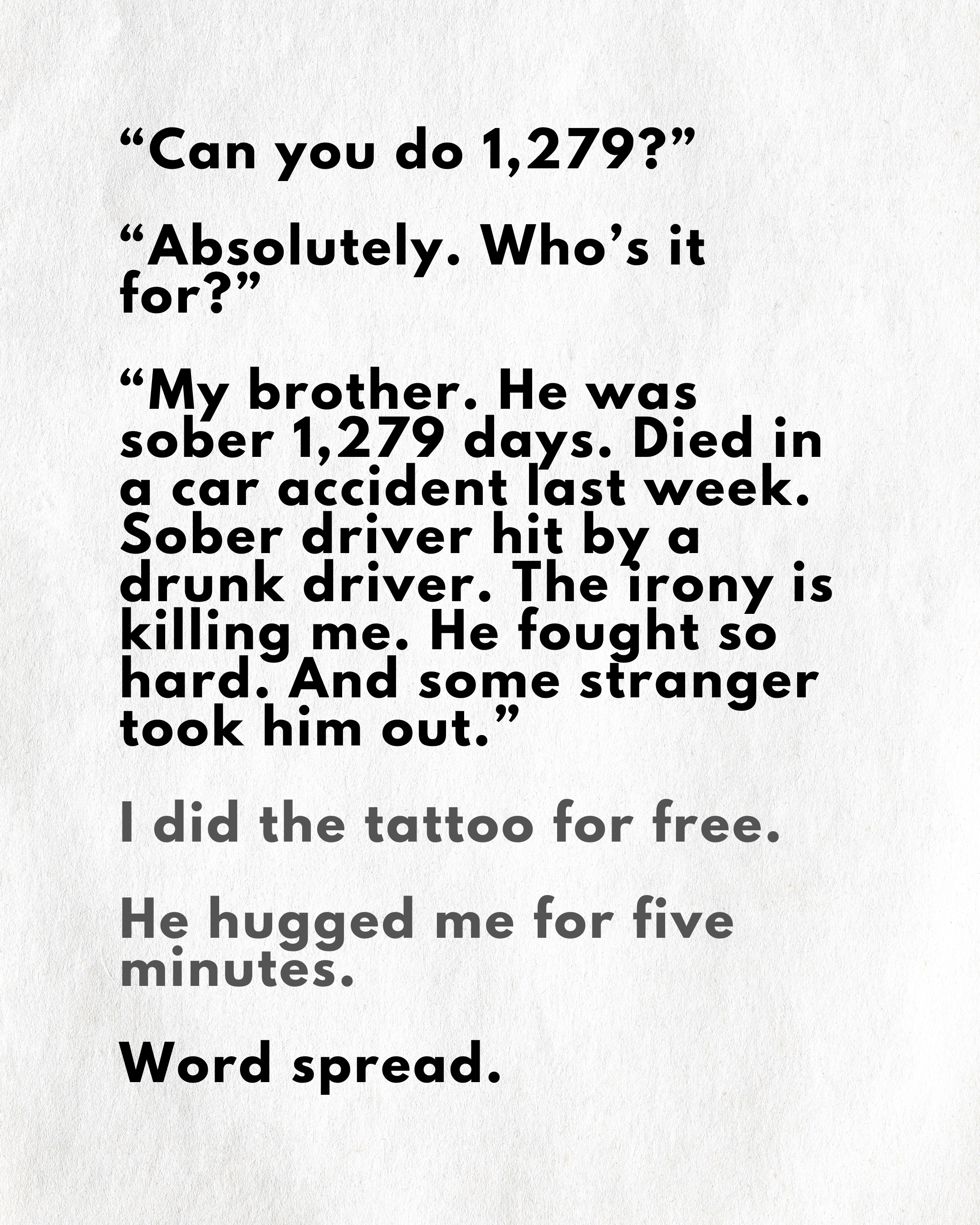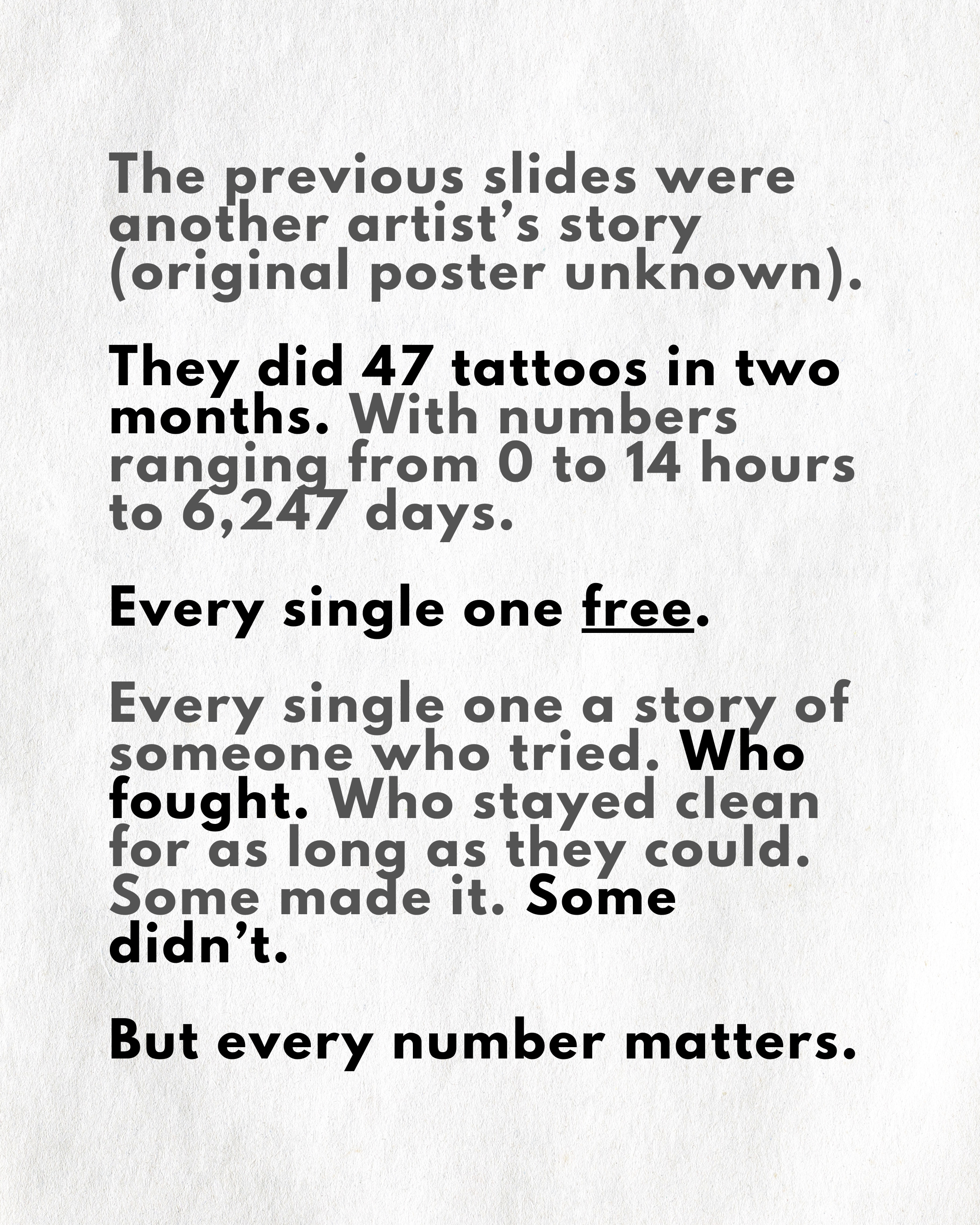 Nick is also offering a 20% discount on larger, more personal/unique recovery or memorial related custom tattoos, if you're looking for something larger than numbers.