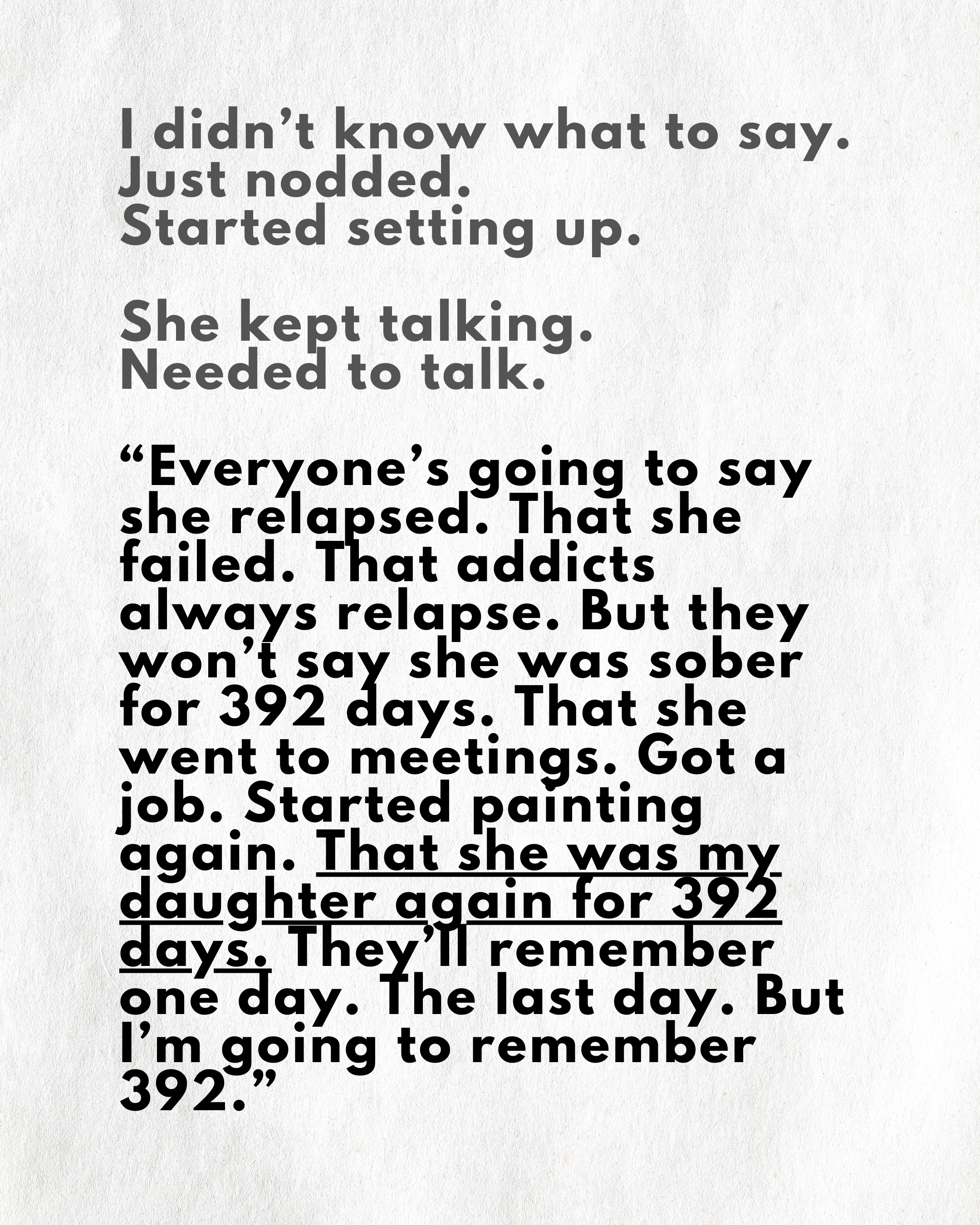 Because recovery doesn’t happen all at once... it happens one day at a time.